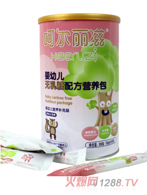 呵爾麗滋無乳糖配方營養(yǎng)包配料:大豆分離蛋白粉、水蘇糖、果葡糖漿、酪蛋白、乳清蛋白、麥芽糊精、碳酸鈣、乳酸鋅、醋酸維生素A、膽鈣化醇、鹽酸硫胺素、核黃素