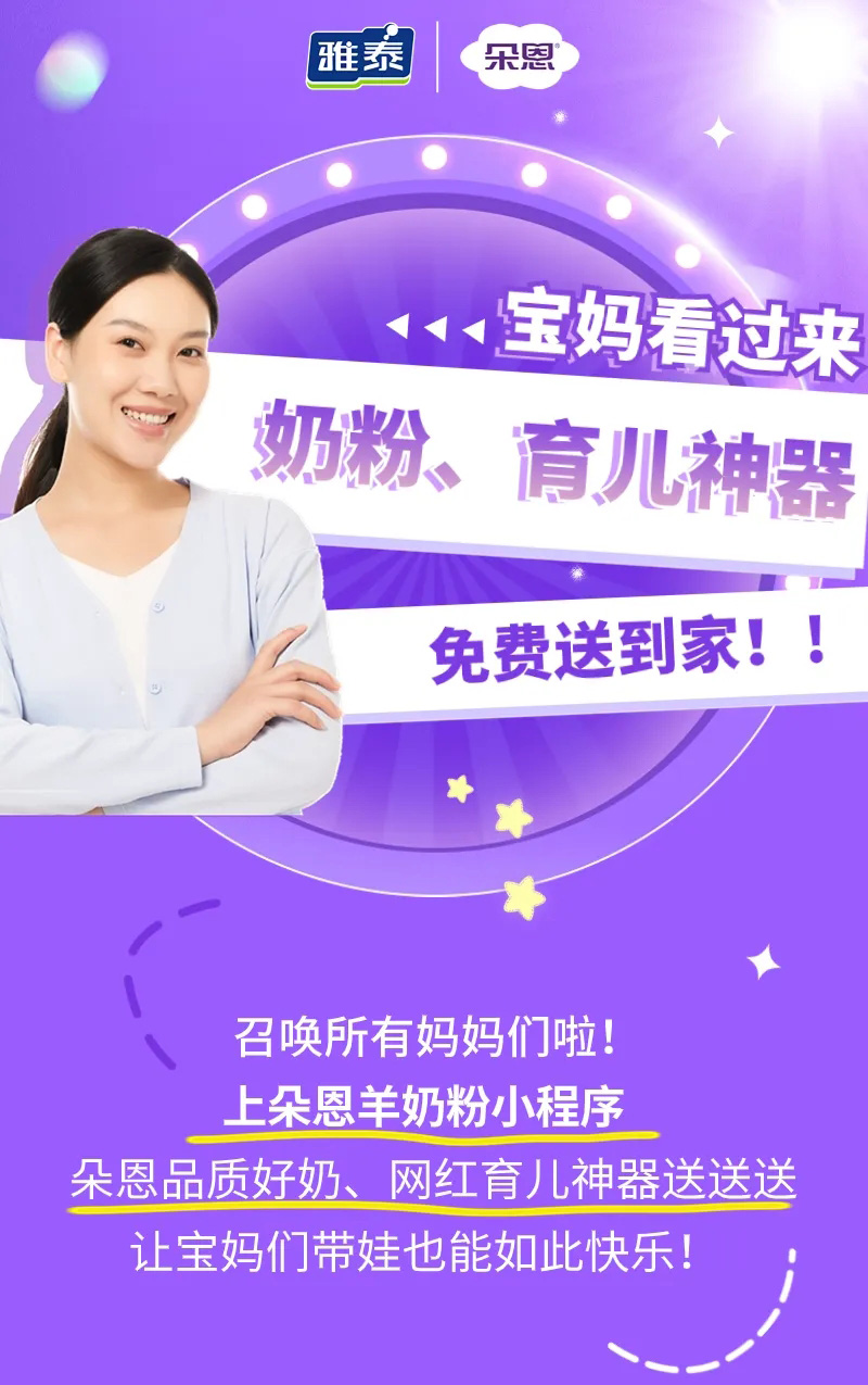 寶媽看過(guò)來(lái)!朵恩奶粉、育兒神器免費(fèi)送到家!先到先得!